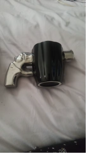 Takket være sit pistolformede design, går denne kop aldrig ubemærket hen. Bekræft din originalitet fra den første slurk.
