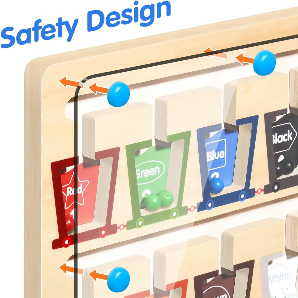 Made of smooth and durable wood, with a surface protected by a transparent fall-proof panel to keep the beads intact.