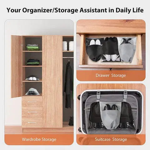 Tämä vedenpitävä laukku estää kenkienne likaantumisen vaatteissanne. Kaikki pysyy puhtaana ja siistinä.
