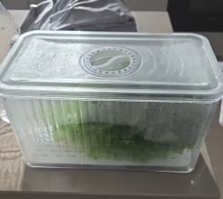 Da, cutia rezistă în congelator și poate fi folosită în cuptorul cu microunde (fără capac), ceea ce o face practică pentru a păstra și a reîncălzi alimentele.